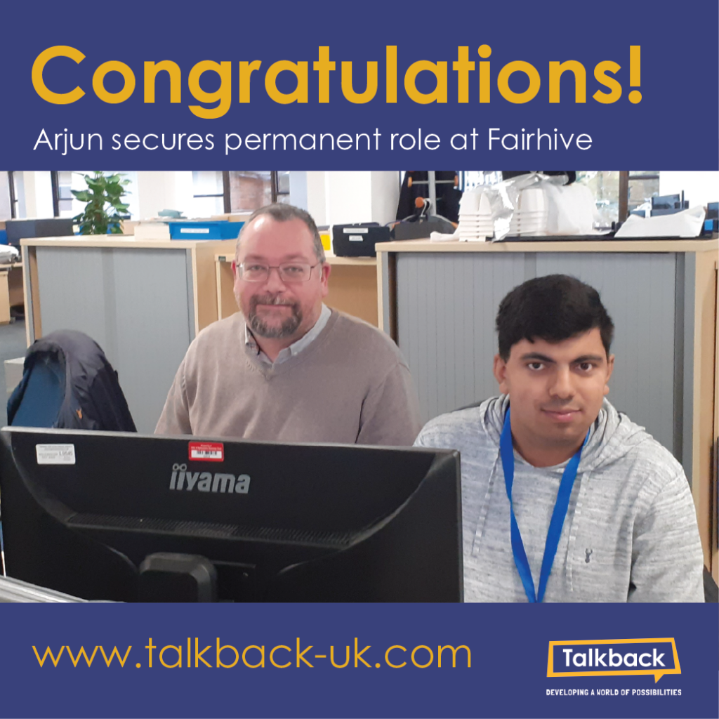 Earlier in the year, Fairhive had taken on Arjun for a, three-month, temporary role in their IT department. When this came to an end, a permanent, part-time position came up, and they asked Arjun to apply. Following his interview, he was thrilled to learn that he had been successful. Arjun commented: Â “I am very happy […]