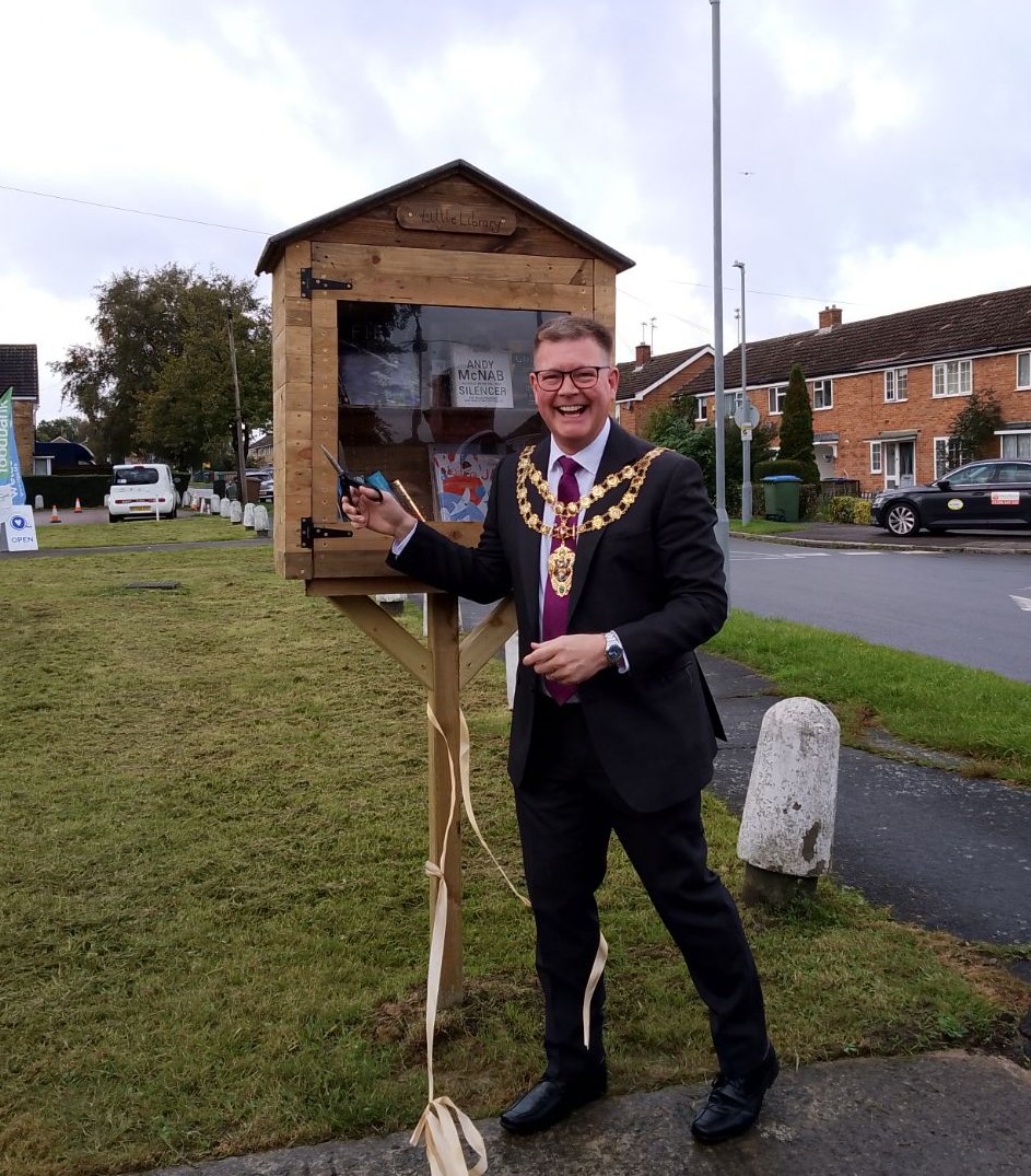 The new Little Library was officially ‘opened’ by the Mayor of Aylesbury, Cllr Steven Lambert. Rev Vicky Burton, Rev Pete Wheeler, St Peter’s Church Community Garden Facilitator Dave Furze, Talkback Chief Executive Jeremy Hay. Members of the local community were also in attendance.