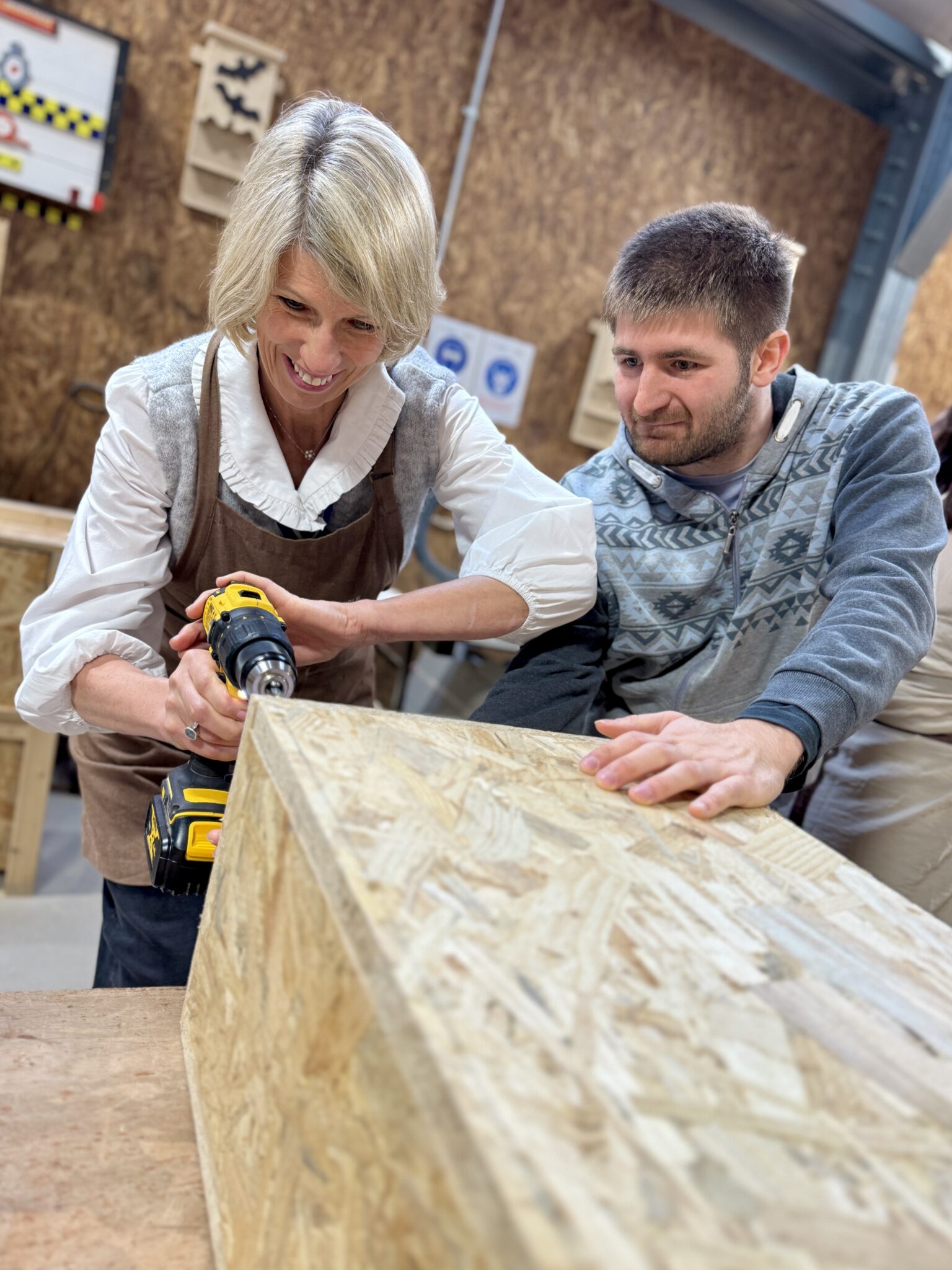 On Monday, Pippa spent the morning with us at our High Wycombe workshop trying out some of our equipment. Connor, our trainee, walked her through how to use the drill and then she gave it a go herself.