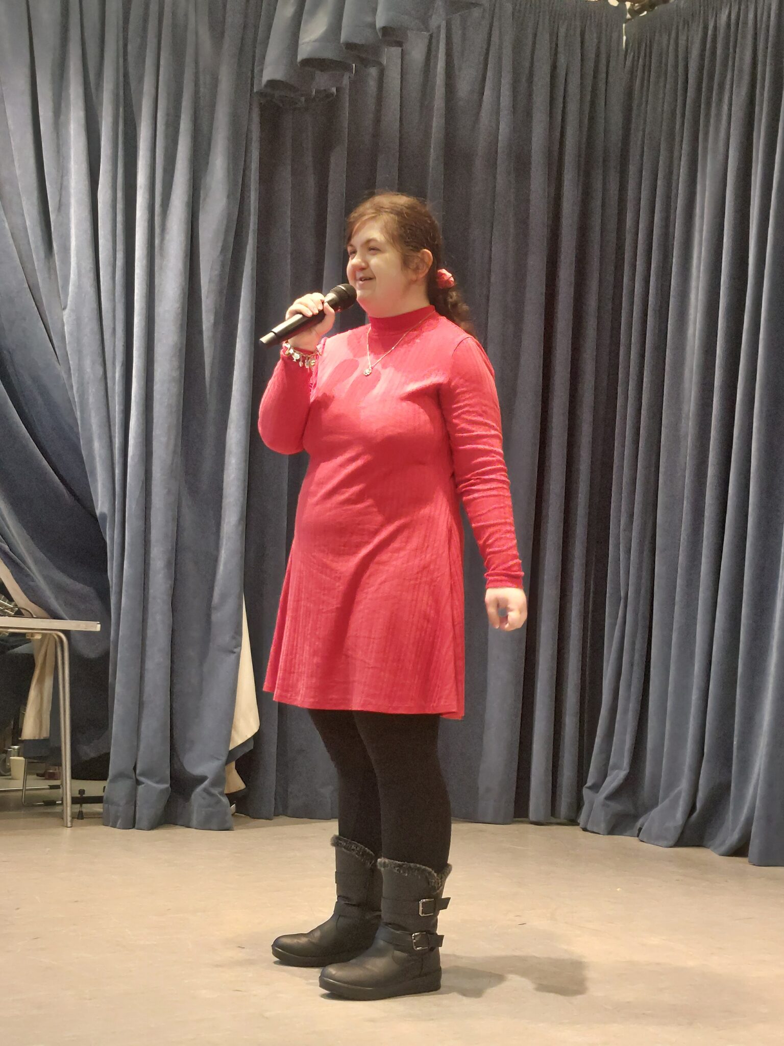 The Drama Group got us moving again to a bit of Taylor Swift. Only one way to deal with all that pizza – Shake it Off. Then Jade kept the Fireworks fizzing, with an exciting dance routine to Katy Perry. Don’t Stop Moving, said Laura – the foot-stomping continued apace, as she sang along to S-Club 7.