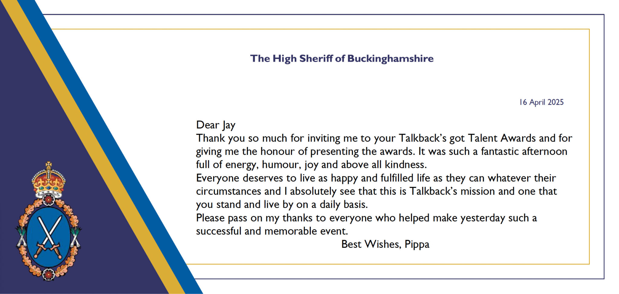 To celebrate their talent, medals were presented to each participant – by Wycombe councillor, Lesley Clarke, OBE; and Pippa Kirkbride, the High Sheriff of Buckinghamshire in full regalia. We’d like to thank them both for taking the time to attend and enjoy our show.