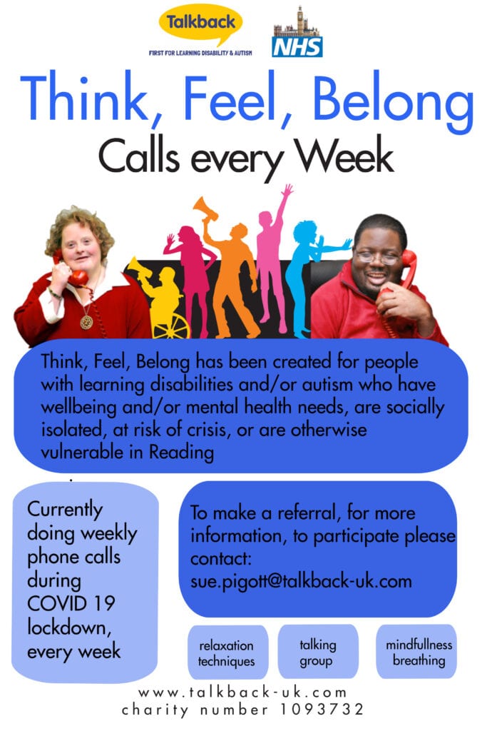 Think, Feel, Belong has been created for people with learning disabilities and/ or autism who have wellbeing and/ or mental health needs, are socially isolated, at risk of crisis, or are otherwise vulnerable in Reading Although weekly sessions cannot happen due to COVID-19, we are still here for you. If you live in Reading and […]